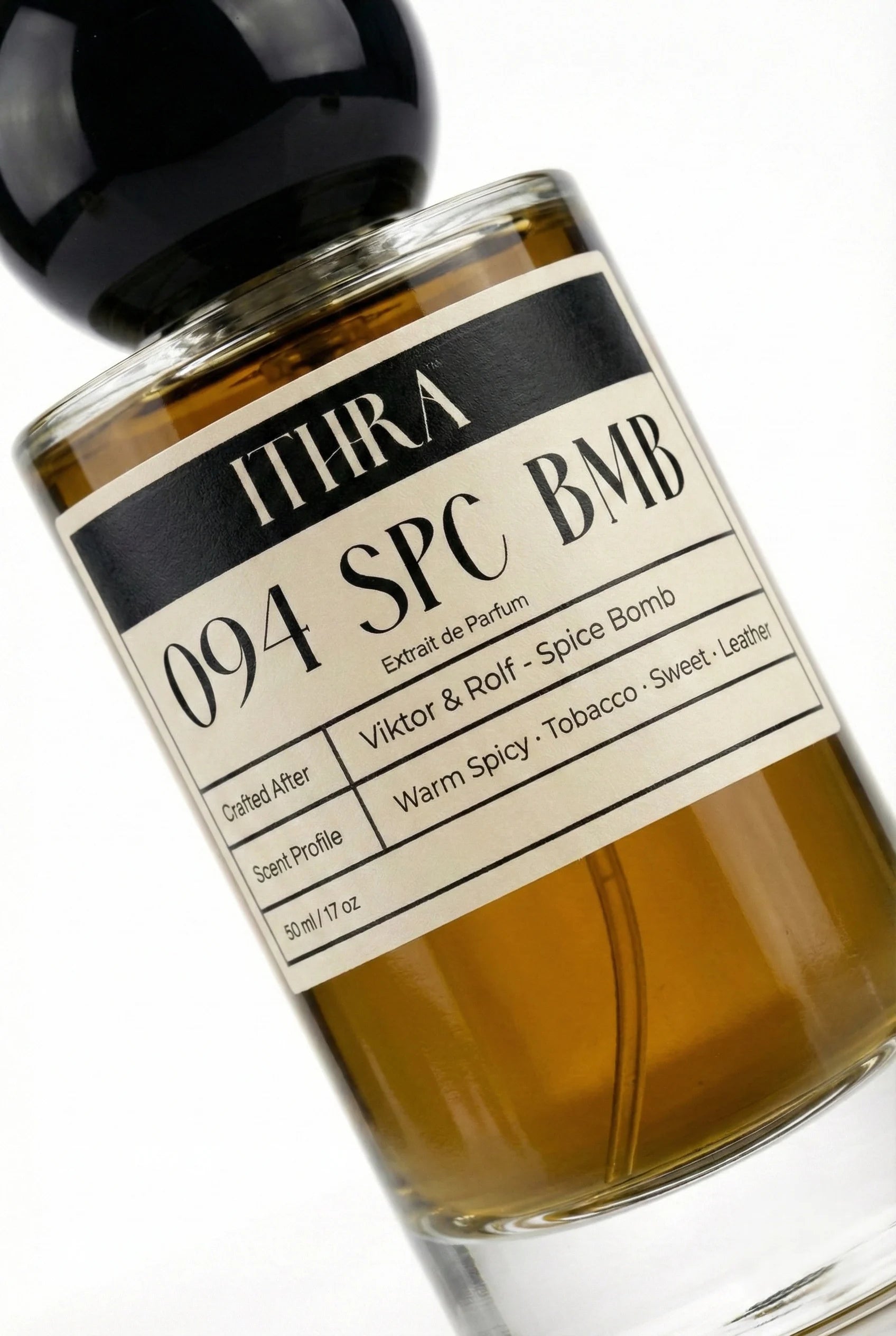 094 SPC BMB is a bold warm spicy tobacco leather sweet extrait de parfum built for strength and intensity. Warm spices and tobacco richness create a commanding masculine scent.